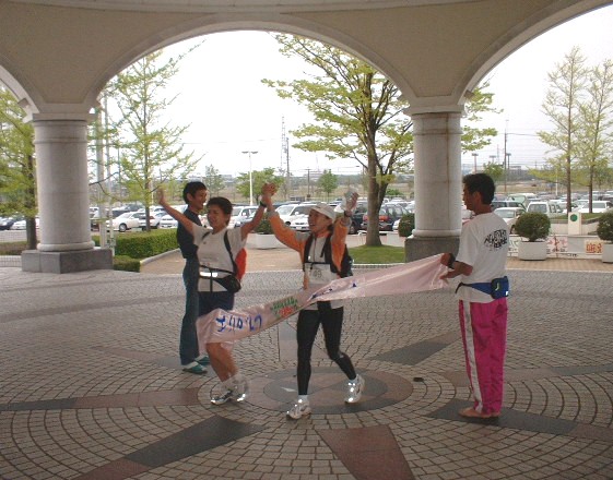 100キロ手前で朝にお世話になった潟Vントーの水野さんが応援にいらっしゃいました。